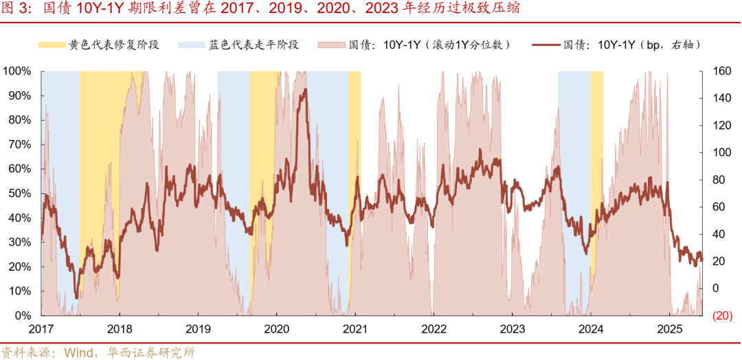 总结而言,历史上曲线的极致走平多与央行操作相关。无论加息与否,当央行对于流动性的操作“收紧”时,市场往往容易走出较为极致的熊平行情,2025年一季度也不例外。而后续曲线的修复走陡同样依赖于央行的态度缓和,具体表现可能不局限于降准降息,也包括日常的呵护性投放提升。不过参考历史,央行态度改善对于曲线斜率的影响可能并非立竿见影,市场需要一段时间来适应与接受这一改变,宽松效果的传导也需要一个过程,最终如大行等机构能腾挪出空间在二级市场配置短债,进而有效推动短端利率修复,曲线走陡。从当前的状况来看,央行的态度已然转暖,我们可能正处于曲线由平走陡的拐点上。